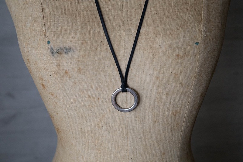Leather Laces Pendant / Brass Nickel Matte Flat Ring Design